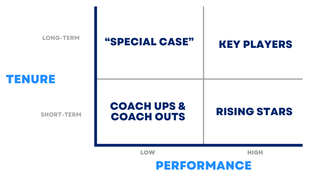 New, low-performing employees can either be coached up (taught the skills and behaviors necessary to become a key player) or coached out (assisted in understanding their strengths and finding alternative employment).